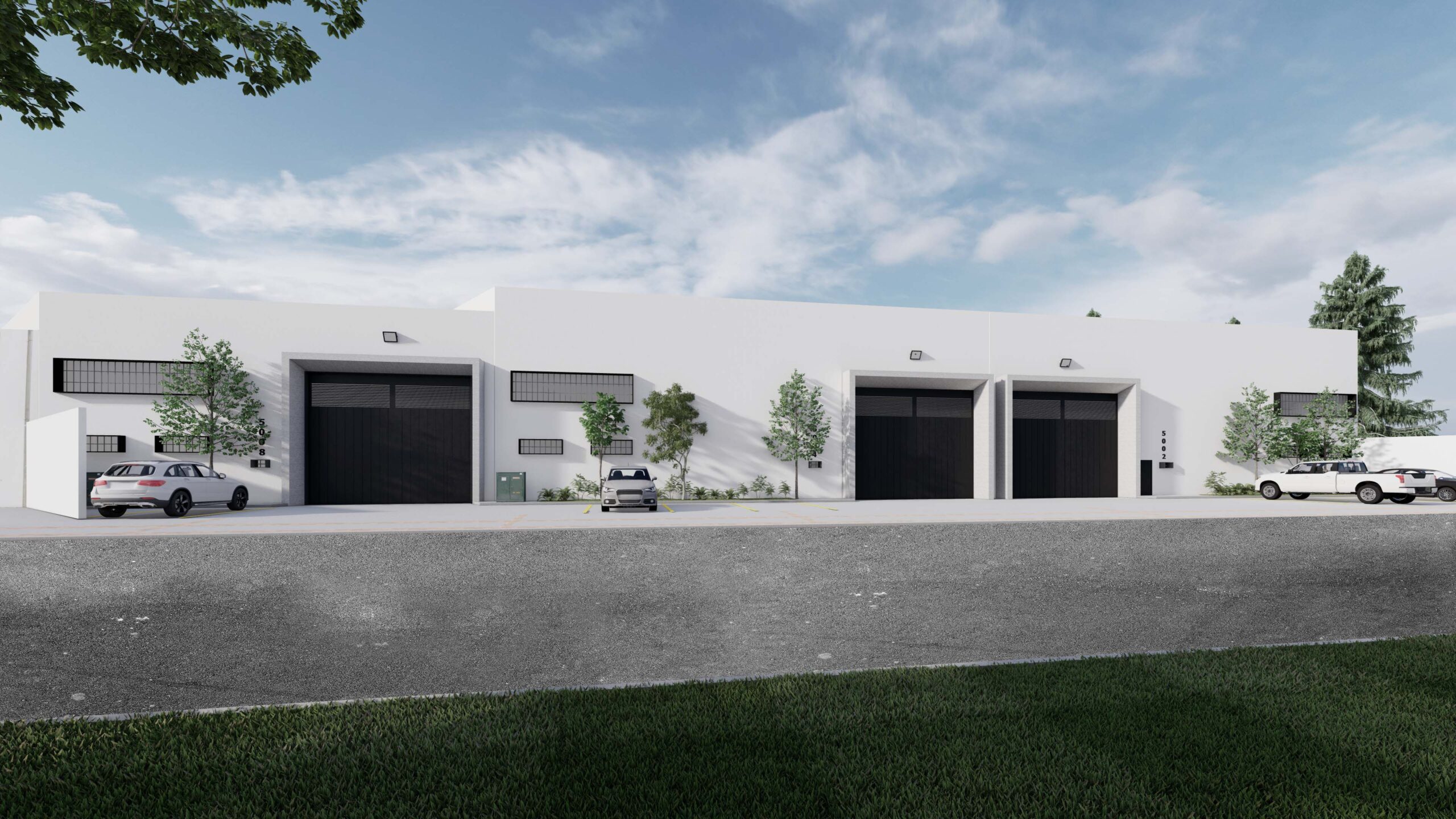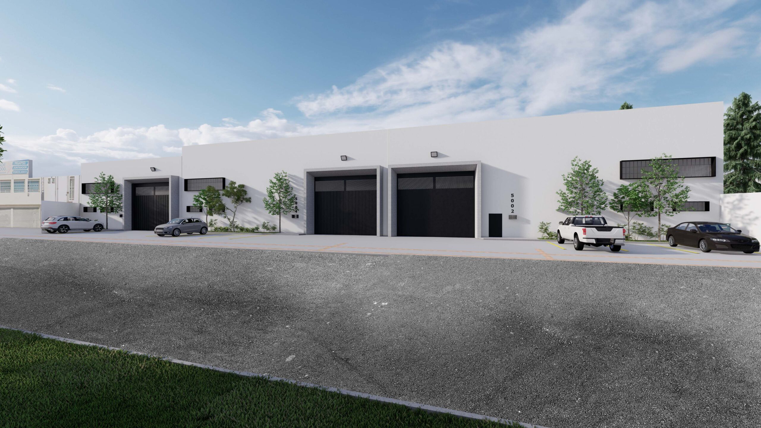 Tres bodegas contando con acceso a trailers , estacionamiento interior y exterior , mezanine y baños de servicio.